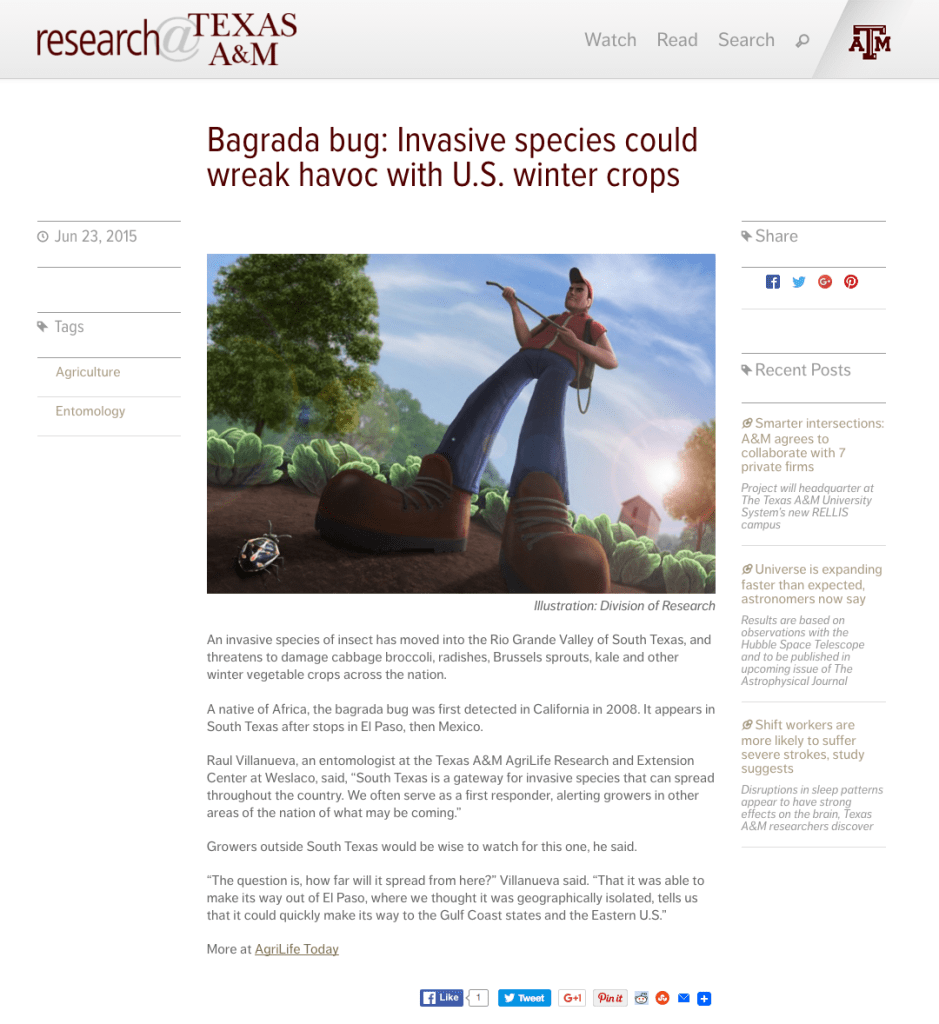 Role: Art direction for the Research@Texas A&M news site including supervising and mentoring graduate student illustrators.